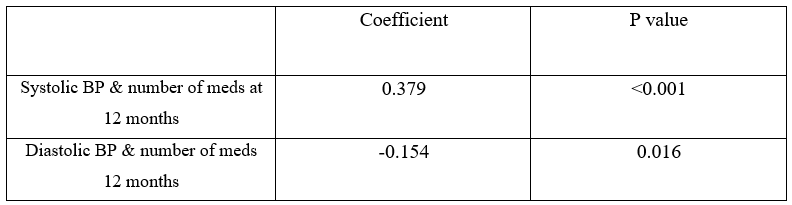 Method: A single center retrospective study of the renal transplant recipients who underwent kidney transplantation between January 2017 to May 2020 with12 months follow up. We reviewed BP readings before transplant and at one month, 6 months, 12 months after kidney transplantation. We also reviewed the number of BP medications at the same intervals post transplantation. BP goal was <140/90. during the time of this retrospective study as per the published guidelines3.