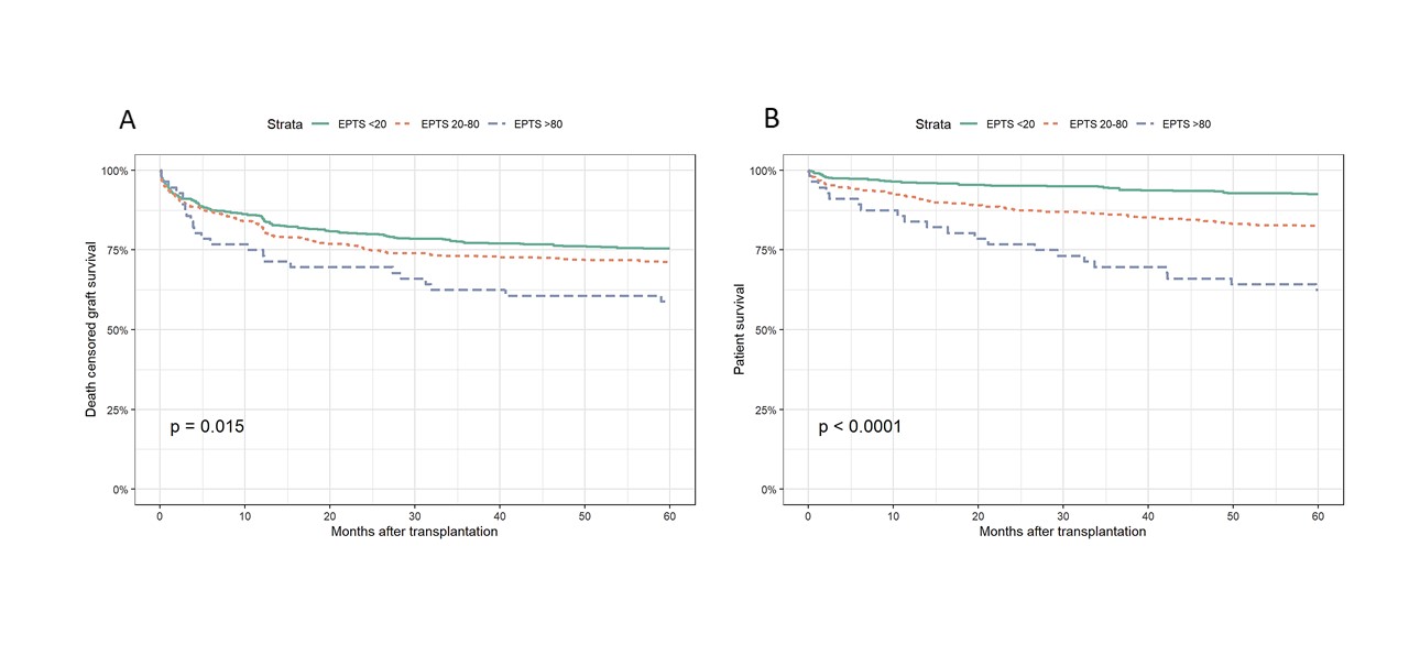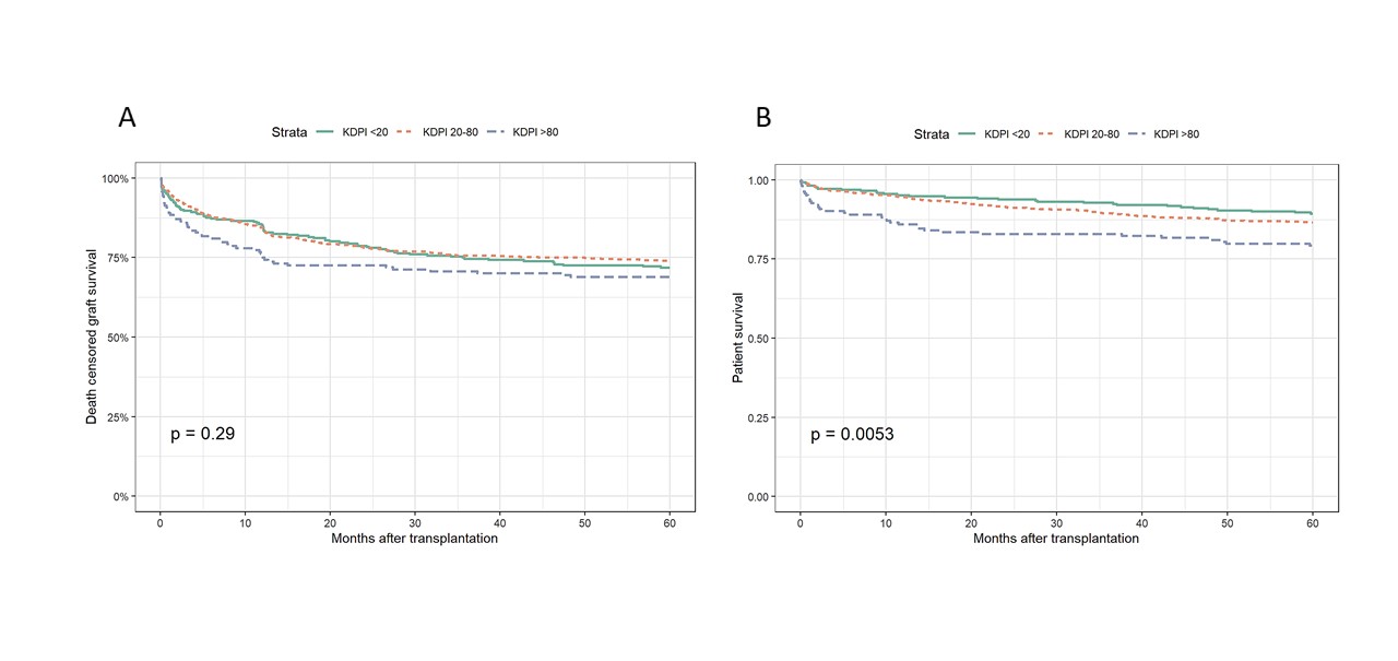 Method: Retrospective historic cohort study which included al the adult deceased-donor kidney transplant patients between January 2009 and December 2021. A descriptive analysis of clinical and sociodemographic characteristics, including KDPI and EPTS was performed. The online tool was used to calculate the estimated-5 year predicting survival benefit for each patient. This will later be compared to graft survival and patient mortality for our population.