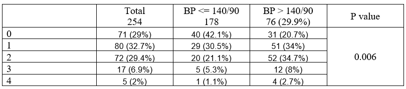 Method: A single-center retrospective study of the renal transplant recipients who underwent kidney transplantation between January 2017 to May 2020 with12 months of follow-up. The goal target of hypertension treatment during this retrospective study was <140/90 mmHg as per the published guidelines at that time. We divided patients according to their blood pressure (BP) control at 12 months post kidney transplantation into two groups: controlled BP ( ≤140/90) and uncontrolled BP( > 140/90). We studied the association between the patients’ demographics and baseline cardiovascular risk factors and uncontrolled HTN 12 months post kidney transplantation. We also studied the association between pretransplant (baseline) cardiovascular imagings and uncontrolled HTN at 12 months. These tests included:(ejection fraction, wall motion abnormalities on echo, calcium scoring, perfusion stress test, cardiac angiogram, and the degree of calcifications on CT of pelvic arteries). Additionally, we studied the changes seen during the first 12 months post kidney transplantation. These included: creatinine change, rejection, weight change, A1C change, post-transplant diabetes, LDL change, PTH change from baseline, and persistent hyperthyroidism.