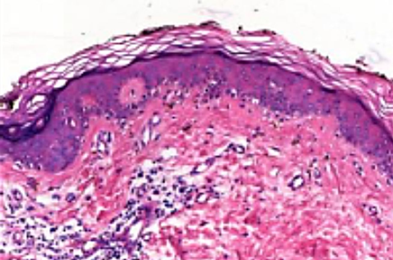 Method: We present a 62-years old male patient with hepatitis C-virus (HCV) cirrhosis and successfully downstaged to Milan criteria HCC. Orthotopic liver transplantation was performed after 6 months of surveillance and discharged uneventfully after 7 days. One month later patient developed abdominal cramps, diarrhea and cutaneous erythema. Mild leukopenia with normal liver and renal function, blood and stool samples were negative, clostridium and other pathogens were also ruled out. Abdominal CT-scan showed moderate distal ileum and colon wall edema. At colonoscopy stellate ulcers was found, biopsy was taken as well to skin lesions. Colon biopsy showed acute inflammation with severe mucosal damage and apoptosis. Skin biopsy showed interphase vacuolar dermatitis. GVHD was suspected and donor lymphocyte chimerism was positive with 5%.