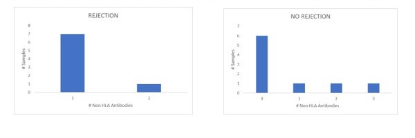 Results: The results of the Non-HLA antibody test of the patients who presented rejection in the EMB were compared with the control group that did not have biopsy-proven rejection results, evaluating the number of non-HLA antibodies detected in the study group compared to the control group.