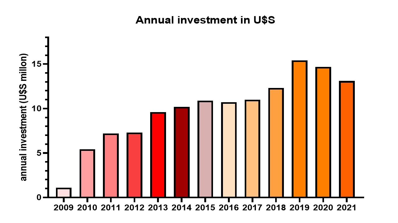 Results: PNSPT coverage has steadily increased from 705 patients (2009) to 4,351 (2021). Investments in medicines increased even more, going from US$1.1 million in 2009 to US$13.1 million in 2021. Thus, the direct increase in the average investment per patient doubled between the periods analyzed (2009: u $1,559.9; 2021: $3,010.6). The largest investment was in 2019 and there was a slight decrease in the following 2 years, as a result of changes in the management of the Program, related to the search for efficiency in the use and purchase of medicines.