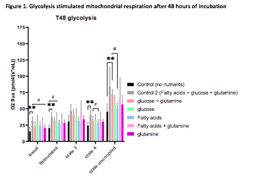 Results: Mitochondrial respiration, in terms of the respiratory control ratio (RCR), after HMP is best when only glutamate is used to stimulate. Furthermore, mitochondria were better preserved after 48 hours with the addition of glucose, glutamine and fatty acids compared to no nutrients. No differences were seen between glycolysis or fatty acid stimulation.