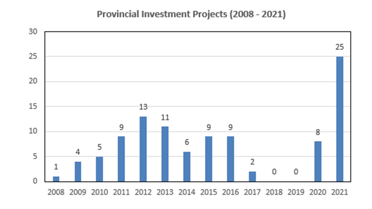 Results: Results: the FST managed and financed 102 projects. The analysis showed that, except for 2018 and 2019, every year investments projects were managed, being the highest in 2021, followed by 2012 and 2013.