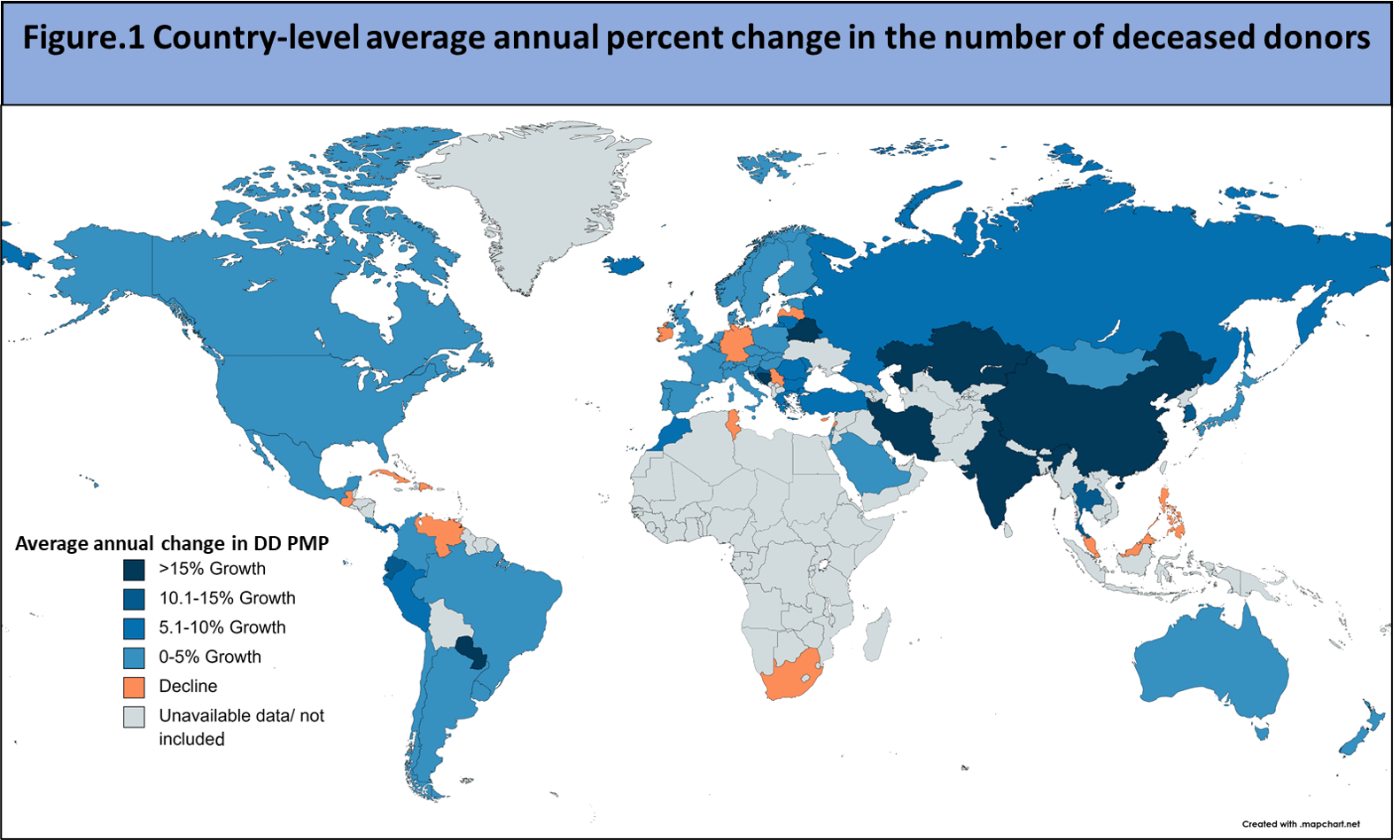 Conclusion: In this global sample, the number of DD increased by four folds between 2000-2019, mainly driven by donations after brain death. However, only 4 in 5 countries maintained growth in their deceased donation activities over time. Future research is needed to understand the variation in donation activities worldwide.