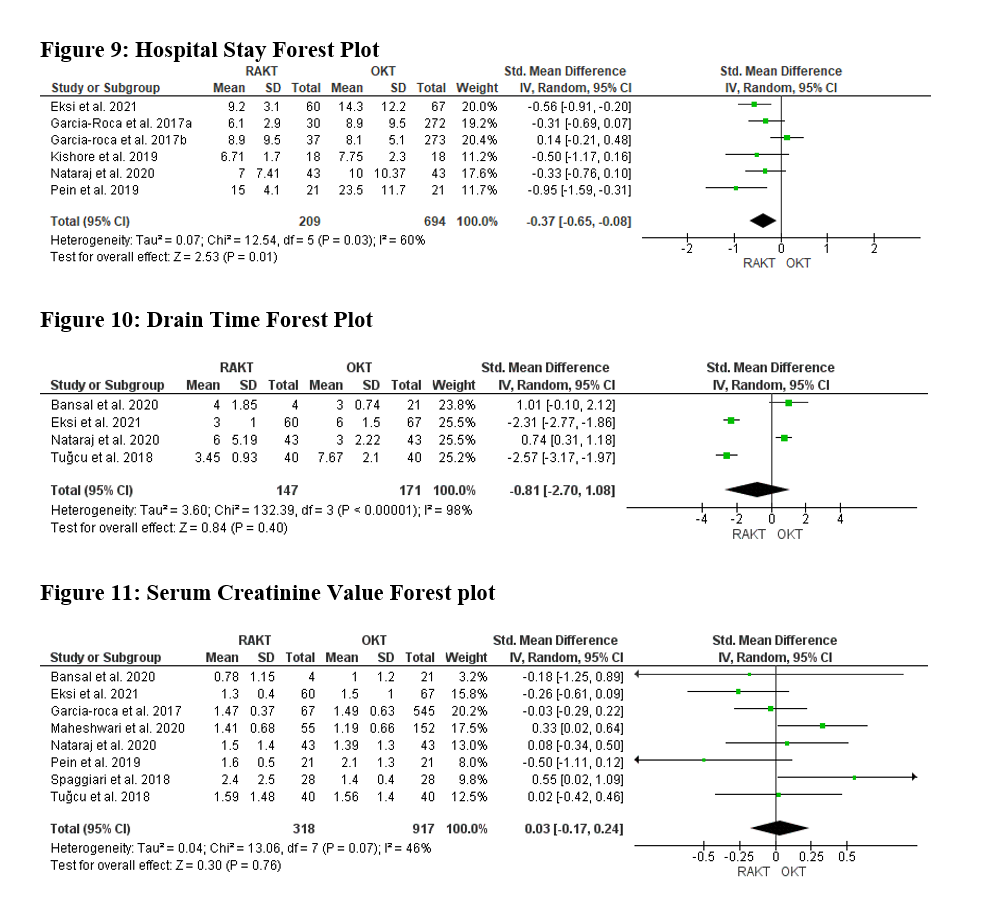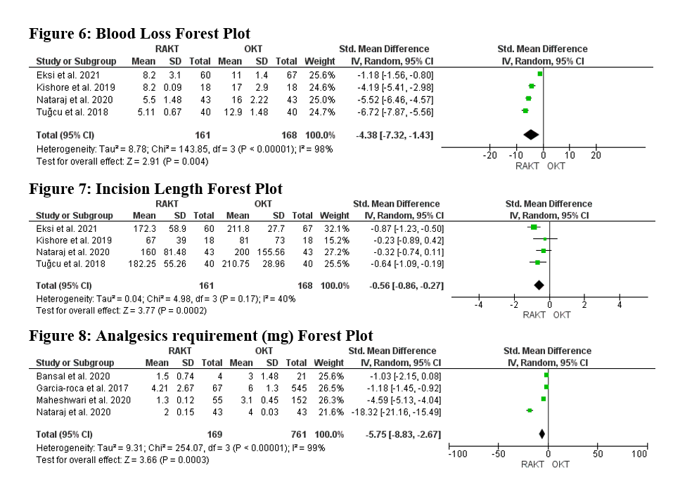 Methods: Database search was performed following Preferred Reporting Items for Systematic Reviews and Meta-Analyses (PRISMA) statement to identify studies on the effect of RAKT on surgery duration, kidney failure risk, operative blood loss, length of hospital stay, intraoperative complications, and postoperative complications. The snowball procedure was also used to extract relevant articles from the citations of some included studies. Finally, the Meta-analysis was performed, a random-effects method was applied, and the standard mean difference was used to compute the p-value and I2 value.