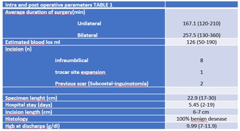 Conclusion: Laparoscopic nephrectomy in ADPKD is a safe and effective technique, offering good results and low morbidity to patients Although open nephrectomy is associated with high postoperative morbidity, such as prolonged hospital stays, postoperative pain, vascular access complications, postoperative ileus, transfusion needs, it continues to be one of the most widespread methods in our environment to treat these patients. Laparoscopic surgery with all the benefits of minimally invasive methods has its place in these patients, achieving very good results.