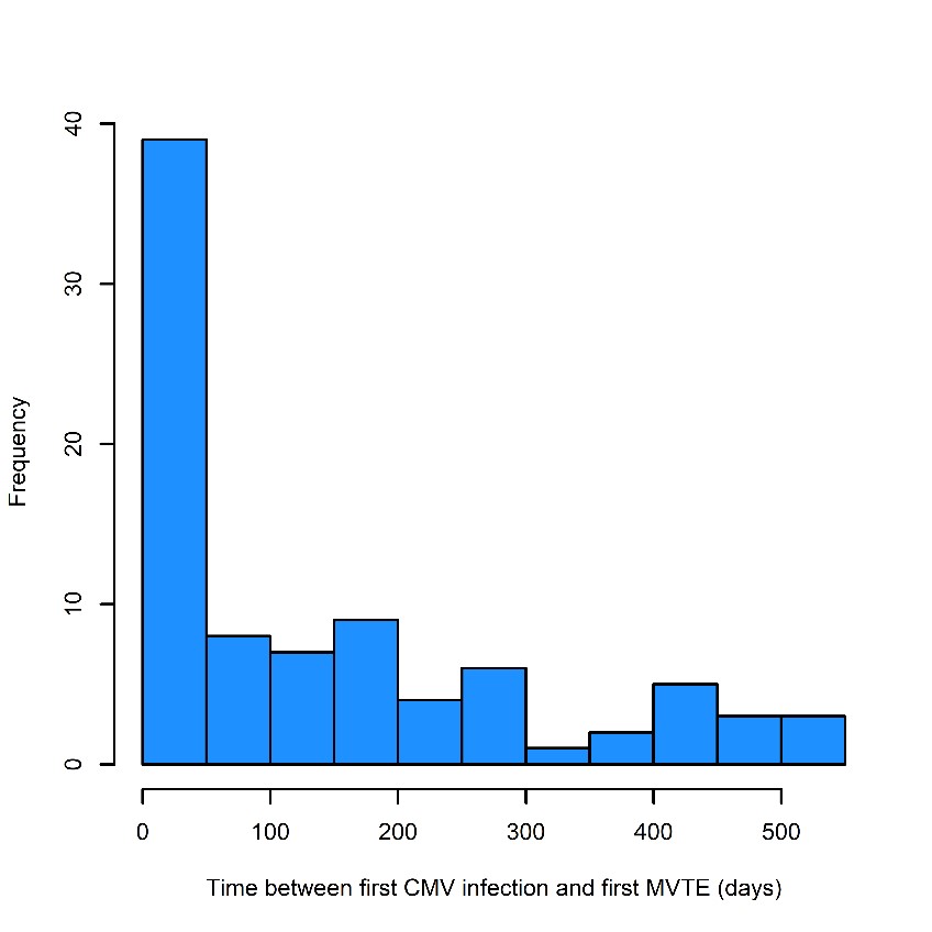 Conclusion: After CMV infections and particularly in case of CMV disease, there is an increased risk of VTE. Since to the high frequency of CMV infection after a kidney transplantation, transplant physicians should be aware of such association for a rapid diagnosis and adapted treatment.