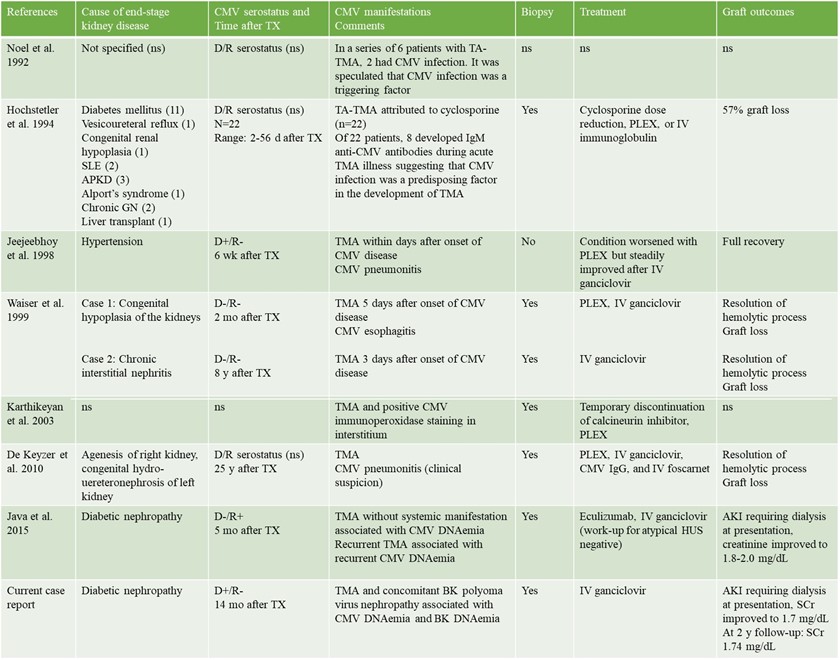 Cytomegalovirus-induced thrombotic microangiopathy after renal transplant: case report and review of the literature