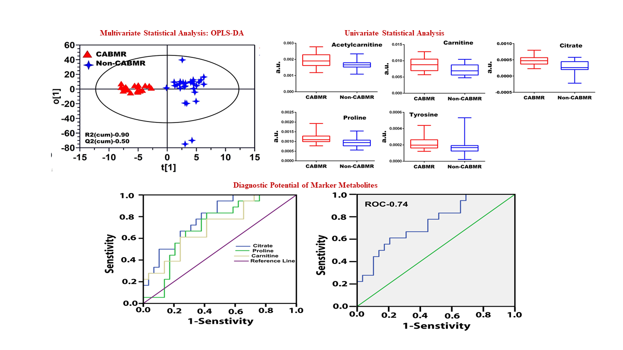 Conclusions: Despite being in its early stages, metabolomics monitoring in kidney transplantation can provide reliable indicators of chronic kidney injuries and allograft rejection The diagnostic model that evolved in this study may prove valuable as a tool for a definitive diagnosis of CABMR and NCABMR patients after validation in larger sample sizes.