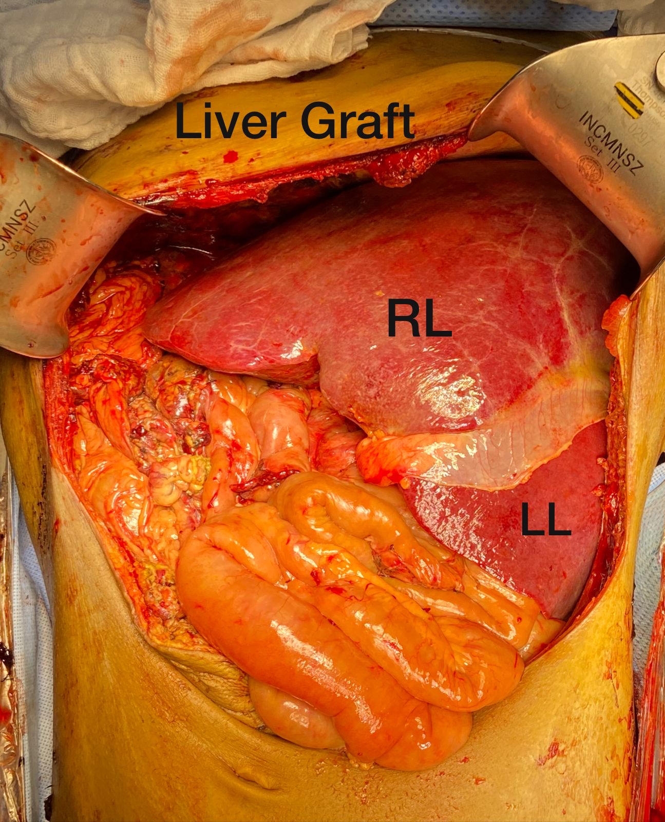 A 22-year-old man with situs inversus totalis and end-stage liver disease secondary to congenital biliary atresia and previous Kasai portoenterostomy at two months who was referred to our center with portal hypertensive bleeding, recurrent cholangitis, and hepatocellular carcinoma. He completed the liver transplant protocol. Preoperative liver angiotomography revealed, besides the mirror image orientation of the viscera and dextrocardia, inferior vena cava (IVC) and portal vein (PV) with good patency, splenorenal shunt, collateral circulation, and common hepatic artery arising from the superior mesenteric artery. A suitable 59-year-old cadaveric male donor with no anatomic variation was accepted. He underwent to liver transplant, his BMI was 16.7kg/m2, MELD and Child-Pugh scores were 24 and 7 points. The donor's liver weighed 1725g.