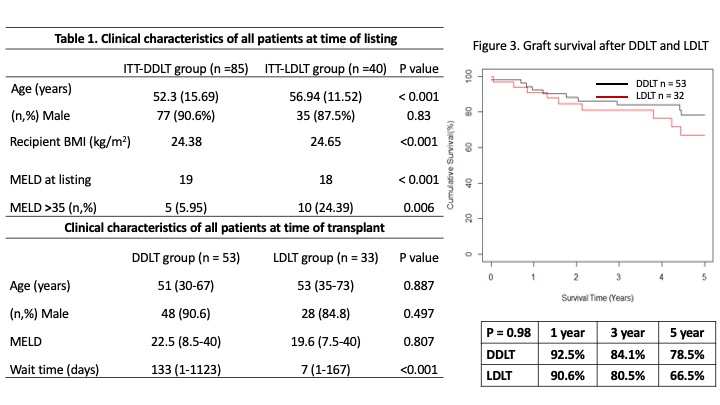 Conclusion: LDLT allowed a quicker access to LT and achieved similiar perioperative and long term outcomes for ALD patients.