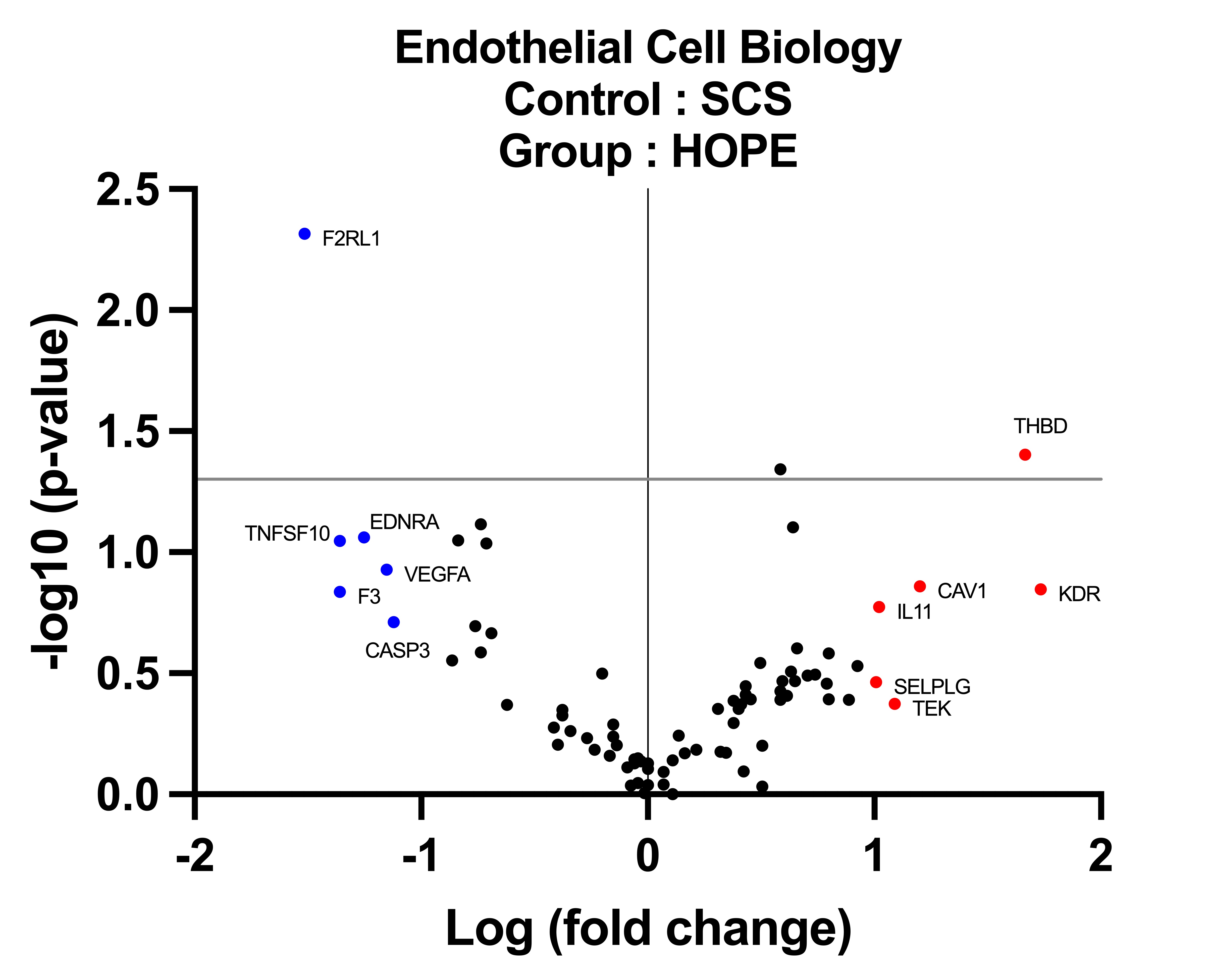In contrast, a decrease in markers of antithrombotic activity was observed during statical preservation (THBD). Comparison of gene expression during static preservation and HOPE suggests a decrease in the expression of several genes involved in inflammation (IL-6, F2RL-1, TNFS10, F3), apoptosis (CASP3, EDNRA), or related to ischemia (VEGFA), associated with an increase in the expression of genes related to vasodilation and anticoagulant effect (THBD).