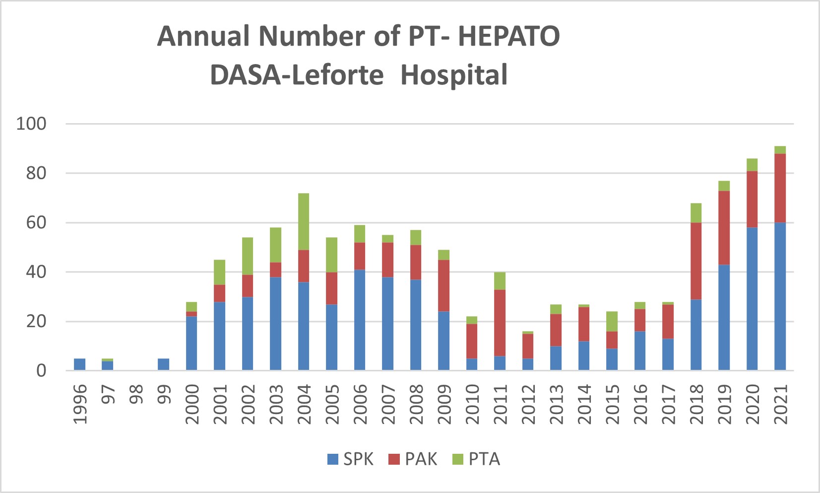 Conclusion: Our PT program has been maintained as high-volume over the last decades and jumped to a very active(over 60 PT yearly) in the last 4 years. This growing was determined by evolution in different areas from donor and recipient selection to an optimized post-transplant management.