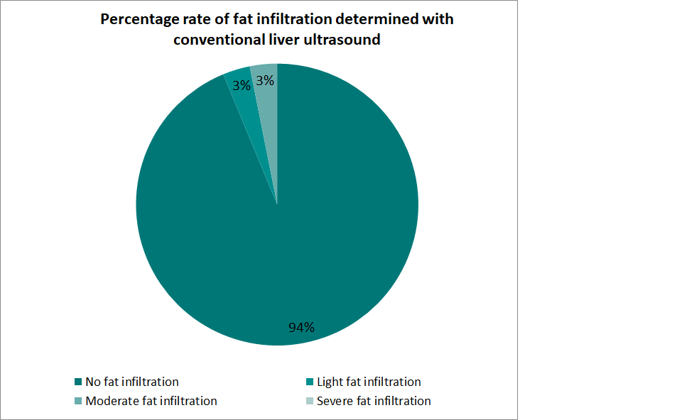 Conclusion: Our study showed that using ultrasound for evaluate liver steatosis for organ donation is not as good as it might be thought. For no liver steatosis concordance between ultrasound and elastography was 50% but in cases for severe infiltration, diagnosed rate was 1 Vs 9 for ultrasound vs elastography, and severe steatosis confirmed at the moment of surgery being evident the superiority of elastography for diagnosis of mild to severe steatosis and becoming a better resource in the evaluation of brain death organ donor.
